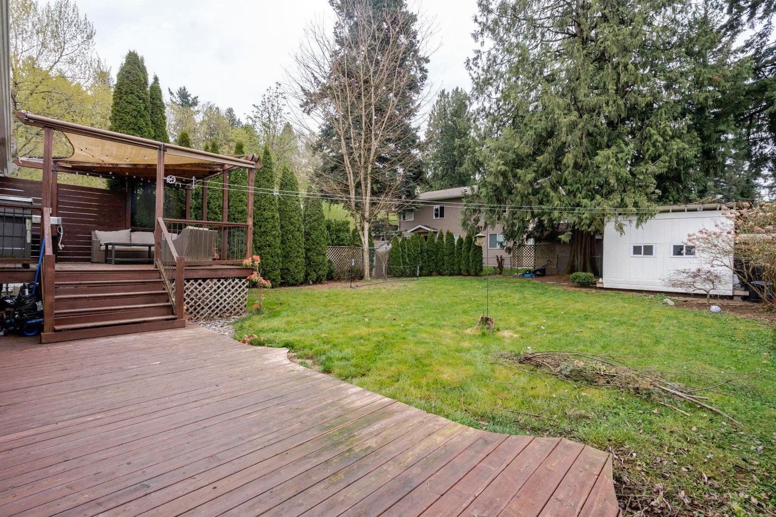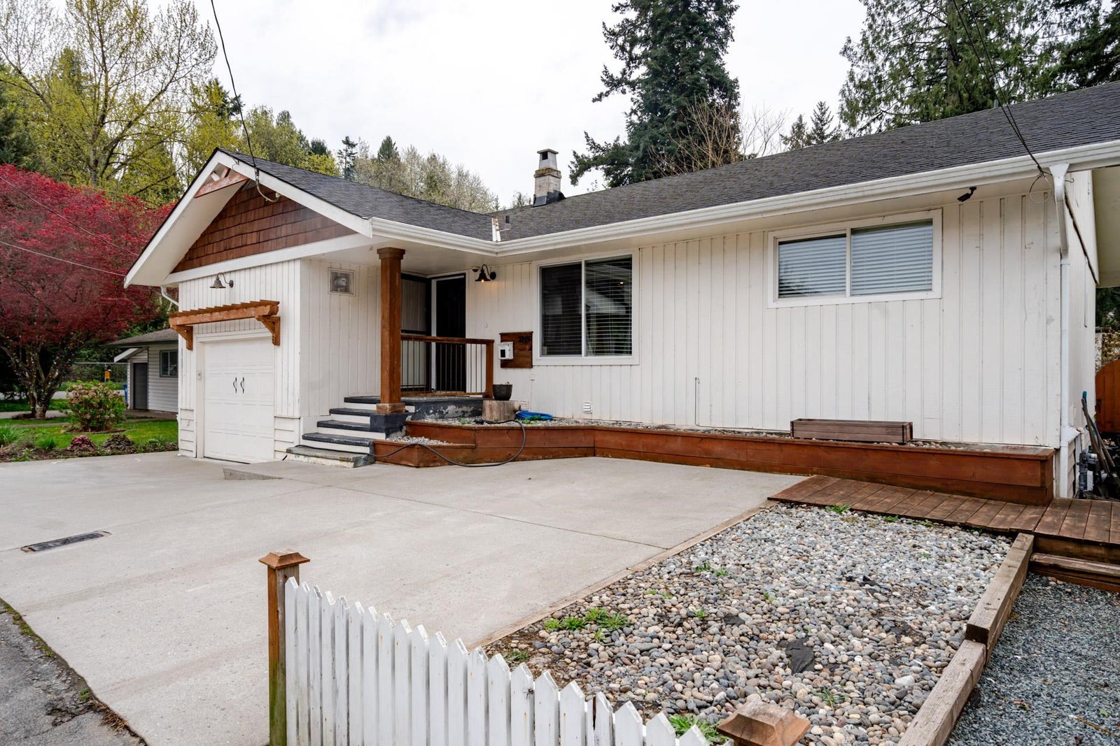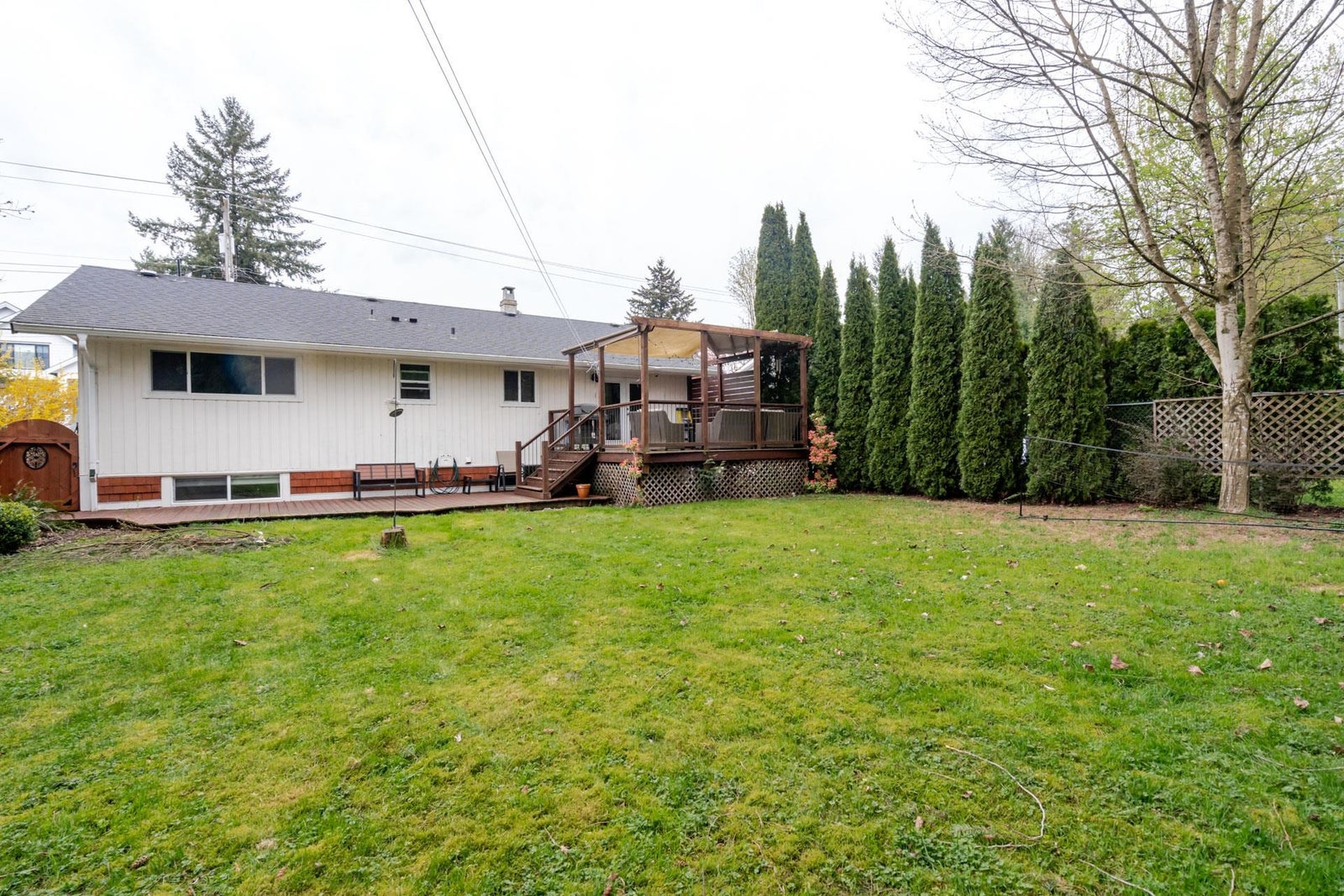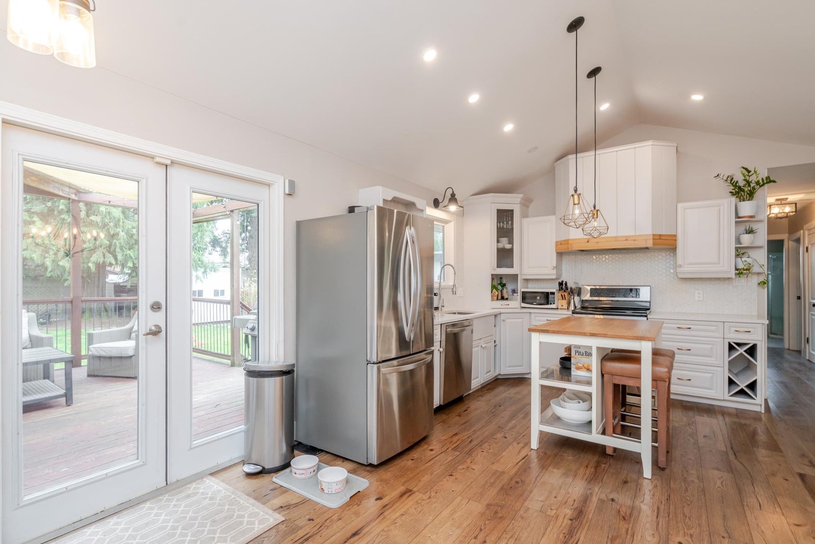 Renovated Rancher with a Full basement! This home has been tastefully updated featuring new flooring throughout, updated kitchen with quartz counters and stainless appliances, 3 updated bathrooms, newer roof, vinyl windows and doors. Great open concept layout, enjoy the vaulted ceilings in the spacious kitchen & dining room which flows into the Living room. 2 bedrooms and 2 full bathrooms on the main level, 3 bedrooms + 1 full bathroom in the basement. Step outside to a huge patio and Sundeck, overlooking the large fully fenced yard which is flat and private with some hedges and trees, bonus large storage shed. Centrally located, walk to shopping, restaurants, parks and more + easy highway access for commuters!